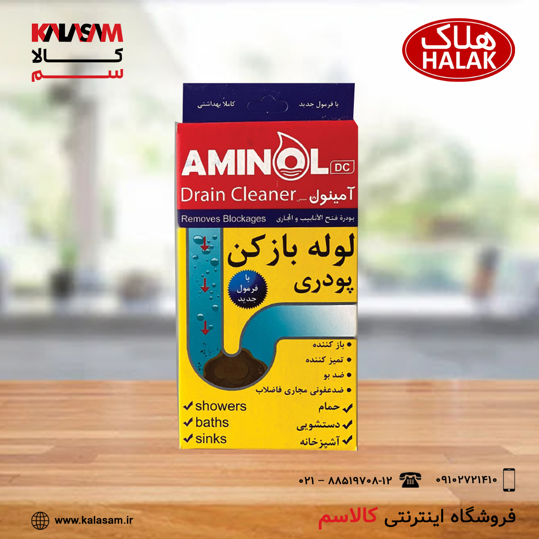 لوله باز کن پودری آمینول | بازکننده قوی فاضلاب و ضدعفونی‌کننده